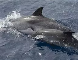 蓝鲸背鳍小,只有在下潜过程中短暂可见。背鳍的形状因个体而不同;有些仅有一个刚好可见的隆起,而其他的鳍则非常醒目,为镰型。背鳍大概位于身体长度的四分之三处。当要浮出水面呼吸时,蓝鲸将肩部和气孔区域升出水面,升出水面的程度比其他的大型鲸类(如鳍鲸和鲳鲸)要大得多。这经常可作为识别海洋物种的有用线索。 当呼吸时,如果风平浪静,蓝鲸喷出的一道壮观的垂直水柱(可达12米,一般为9米)在几千米外都可以看到。蓝鲸的肺容量为5,000升。 [1-2]