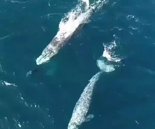 虽然有人曾见到50-60只蓝鲸成群活动,但一般很少结成群体,大多数是孤独的,或仅有2-3只在一起活动。双栖的蓝鲸彼此十分和睦,一起游泳、潜水、觅食和呼吸,宛如鸳鸯,形影不离,身后常常留下一条宽宽的水道。3只在一起的蓝鲸,大多为雌兽和一只幼仔鲸紧靠在一起,雄兽尾随其后,相距大约3米左右。