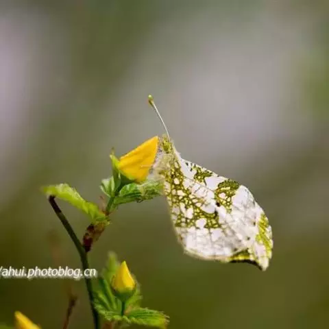 黄尖襟粉蝶,Anthocharis scolymus Butler,属于鳞翅目粉蝶科,…