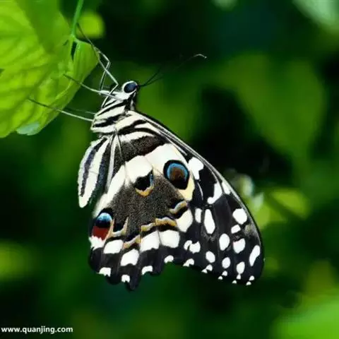 形态 成虫:翅展80—90 mm。翅灰褐色,翅脉清晰。前翅中室及翅脉间有黑色条纹。后翅外缘齿状突出;内缘发白;前缘与外缘共有5个略呈新月形的红斑。翅反面除后翅臀缘增加1个红斑外,其余与正面相似。