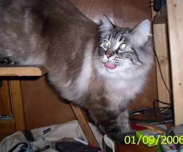 缅因猫因原产于美国缅因州而得名,是北美自然产生的第一个长毛猫品种,约于18世纪中叶形成较稳定品种。缅因猫体格强壮,被毛厚密,长像与西伯利亚森林猫相似,在猫类中亦属大体型的品种。