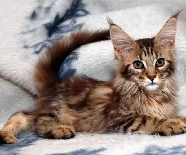 四肢:缅因猫高大粗壮,与体长比例恰当。趾大而圆,有饰毛覆盖被毛:体毛长而柔软,光滑而富有弹性,其中以尾部、腹部的被毛最长而下垂,颈部被毛长而蓬松,肩部的被毛最短毛色有 30 种左右,其中以红色、棕褐色、巧克力色、银白色多见,有时尚见条纹或块状斑点,其中带有温暖气息的棕色虎斑猫最受欢迎。