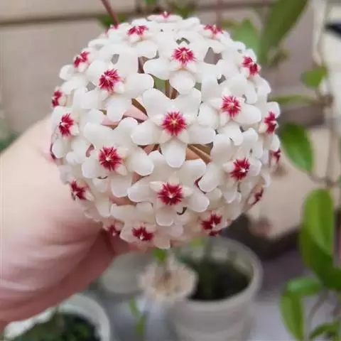 叶子表面宽厚,富肉质感且带有磨纱质感,看像石头质地;开红色小花,生于植株顶部,倒伞形密生,形状像花…