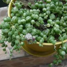 珍珠吊兰因鼓鼓、饱满翠绿的椭圆形小叶子形似珍珠状而得名。又名翡翠珠、 佛珠吊兰、翡翠珠、绿之铃,绿铃。…