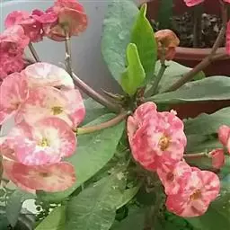 虎刺梅:别称铁海棠,是蔓生灌木植物。茎多分枝,长60-100厘米,直径5-10毫米,具纵棱,密生硬…
