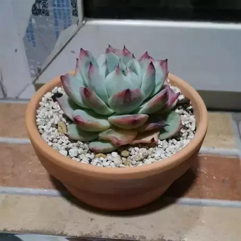 薄叶蓝鸟 叶片蓝绿色,叶尖红色,带粉,花型紧凑,非常漂亮。原产于墨西哥,现世界各地均有栽培。