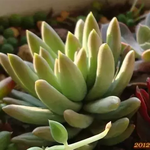 新玉缀是景天科、景天属的多年生植物,多肉植物。景天科景天属多肉植物。叶片不弯曲,叶端圆形。体肥厚肉质,…