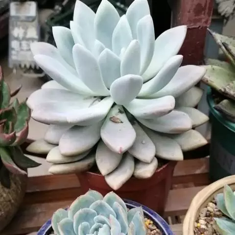 阿尔巴白月影是景天科、拟石莲花属的多年生植物、多肉植物,植株小型,叶片在阳光充足且具一定温差的适宜…
