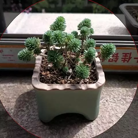 薄雪万年草别名矶小松,景天科景天属多年生草本植物,其细小的蓝绿色棒状叶片环绕生长于茎端,…