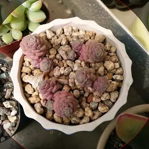 立田锦多肉,易群生的景天科拟石莲花属和厚叶草属杂交多肉品种。茎直立,株高30厘米以内,其叶排列呈莲…