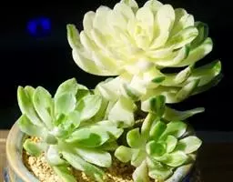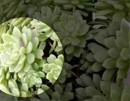 蓝黛莲是一种景天科厚叶草属植物。叶片呈略扁的圆柱形,排列成莲座状;颜色为灰绿色,…