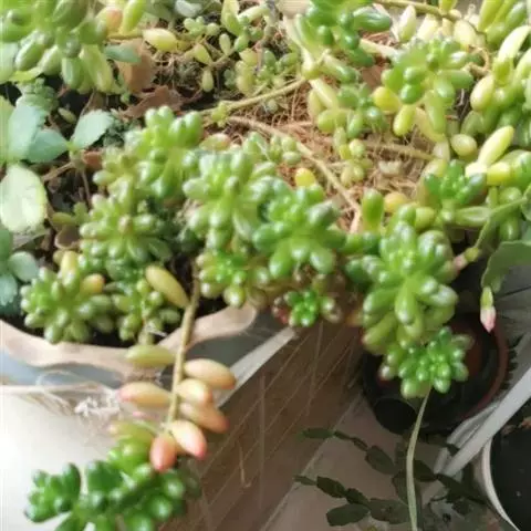灯美人是景天科的园艺品种,多肉植物。叶片近柱状,丛生,在日照时间长、温差大的环境下会呈现橙粉色。