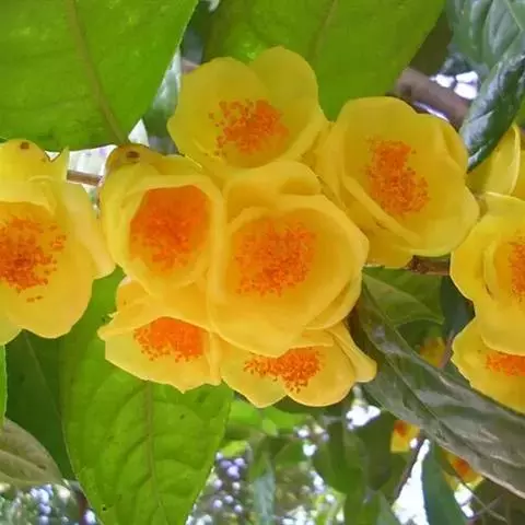 金花茶 Sealy)是山茶科山茶属植物。常绿灌木。叶革质,长圆形或披针形,基部楔形,上面深绿色,发亮,…