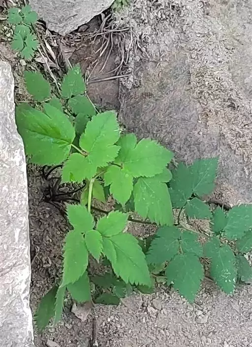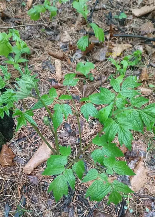 多年生草本。根状茎横走,质坚实,外皮黑褐色,生多数细长的根。茎高30-80厘米,圆柱形,粗4-(6-9)毫米,微具纵稜,下部无毛,中部以上被白色短柔毛,不分枝。叶2-3枚,茎下部的叶为三回三出?鹱锤匆叮叱け灰镀切危泶?27厘米;顶生小叶卵形至宽卵状菱形,长4-8.5厘米,宽3-8厘米,三裂边缘有锐锯齿,侧生小叶卵形至斜卵形,表面近无毛,背面变无毛;叶柄长10-17厘米。茎上部叶的形状似茎下部叶,但较小,具短柄。