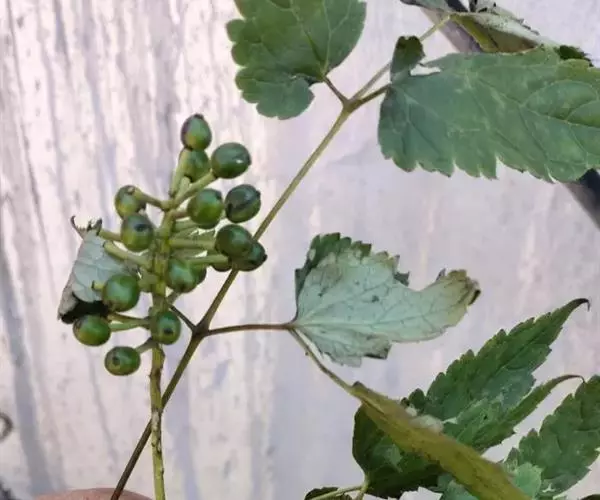 果序长5-17厘米,与茎上部叶等长或超出上部叶;果梗粗约1毫米;果实紫黑色,直径约6毫米;种子约6粒,卵形,有3纵稜,长约3毫米,宽约2毫米,深褐色。5-6月开花,7-9月结果。