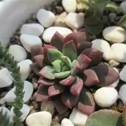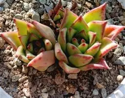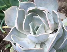 小红衣是景天科、拟石莲花属的一种多肉植物。叶片匙形,扁平细长,叶表具白粉,有明显的半透明边缘,…
