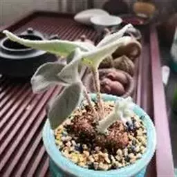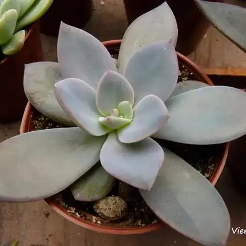 蓝黛莲是一种景天科厚叶草属植物。叶片呈略扁的圆柱形,排列成莲座状;颜色为灰绿色,…