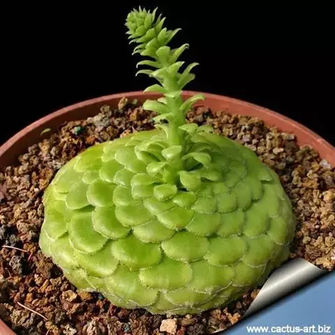 绿龟卵属于景天科景天属,原产墨西哥高原,喜欢亮光,冬春开花,喜欢适度的潮湿不过不能过湿。