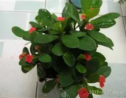 虎刺梅:别称铁海棠,是蔓生灌木植物。茎多分枝,长60-100厘米,直径5-10毫米,具纵棱,密生硬…