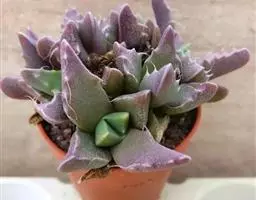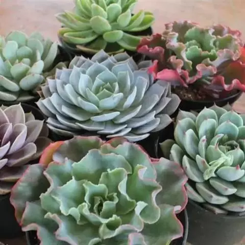 大和锦是景天科拟石莲花属的多肉植物。肉质叶排成紧密的莲座状,广卵形至散三角卵形,背面突起呈龙骨状,…
