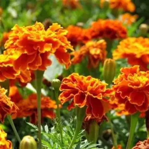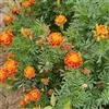 万寿菊是菊科万寿菊属一年生草本植物,别名孔雀菊、缎子花、臭菊花、西番菊、红黄草、小万寿菊、臭芙蓉、孔雀草。万寿菊茎近基部分枝。叶羽状分裂,长5-10厘米,宽4-8厘米,裂片长椭圆形或披针形,具锐齿,上部叶裂片齿端有长细芒,叶缘有少数腺体。头状花序单生,径5-8厘米,花序梗顶端棍棒状。总苞长1.8-2厘米,径1-1.5厘米,杯状,顶端具尖齿。舌状花黄或暗橙黄色,长2.9厘米,舌片倒卵形,长1.4厘米,基部成长爪,先端微弯缺。管状花花冠黄色,长约9毫米,冠檐5齿裂。瘦果线形,被微毛;冠毛有1-2长芒和2-3短而钝鳞片。花期7-9月。万寿菊中国各地均有栽培,在广东和云南南部、东南部已归化,国外原产墨西哥。万寿菊对土壤要求不严,但以肥沃疏松排水良好的土壤为好。耐移栽,种子发芽适温21-24℃,植株生长适合温度为20-29℃。喜温暖和阳光充足的环境,不