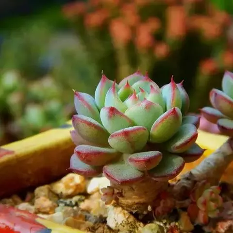 女雏是景天科石莲花属的多肉植物。特征是小巧的株形和橙粉色叶缘。极易生侧芽,…