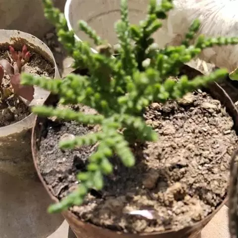 薄雪万年草别名矶小松,景天科景天属多年生草本植物,其细小的蓝绿色棒状叶片环绕生长于茎端,…
