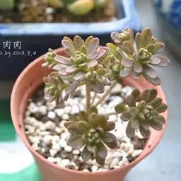 景天科风车草属的多肉植物,原产于墨西哥。株形和风车草属胧月极为相似。花瓣被蜡,叶排成延长的莲座状被…