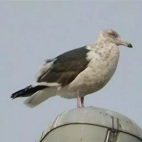 灰背鸥大型水鸟,体长62~69厘米。嘴直,黄色,下嘴先端有红色斑。脚粉红色,头、颈和下体白色,背、…