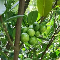 浆果球形,直径4-5厘米,密生棕褐色茸毛,果皮革质,果梗粗壮,长6-7毫米;种子约20粒,长约1.5厘米。