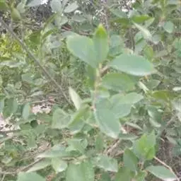 叶薄革质,长圆形,长9-13厘米,宽3-5厘米,先端短渐尖,有钝头,基部楔形,边缘有不规则浅波状锯齿,两面无毛,近同色,侧脉7-8对,网脉明显;叶柄长约1.5厘米,无毛。