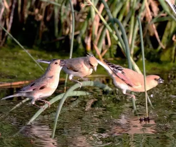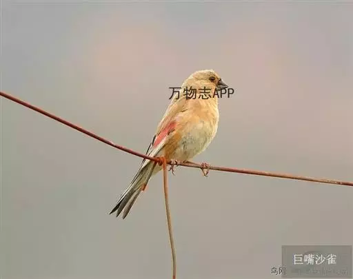 雌鸟和雄鸟相似,但上体更多皮黄色而少赭色,羽色较暗淡,翅上粉红色斑不显著,眼先不为黑色。
