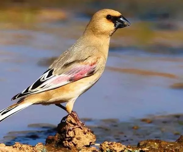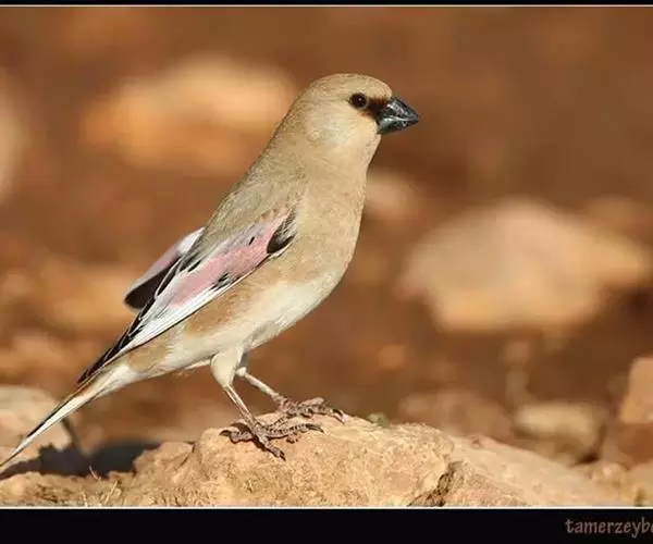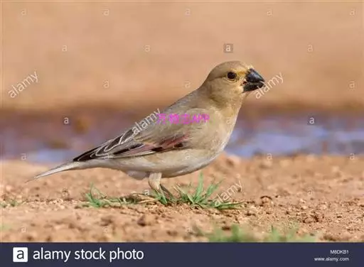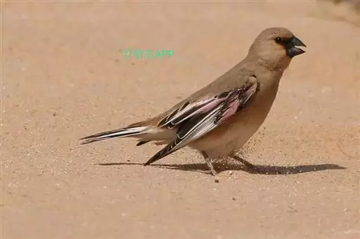 巨嘴沙雀(学名:Rhodopechys obsoleta)为雀科沙雀属的鸟类。体重21-30克,体长132-162毫米。两翼粉红,嘴亮黑,翼及尾羽黑而带白色及粉红色羽缘,具厚大的黄嘴,两翼及眼周绯红。雄鸟头顶黑褐,背褐有黑色纵纹,腰褐而沾粉红;眼周绯红,颊褐,眉纹。雌鸟似雄鸟但色暗且绯红色较少,雄鸟眼先黑色而雌鸟眼先无黑色。与所有相似种类的区别在体羽纯沙色且嘴黑。与其他沙雀的区别在色较深,体羽多杂斑,顶冠色深且嘴较厚。虹膜深褐色,嘴黑色,脚深褐色。