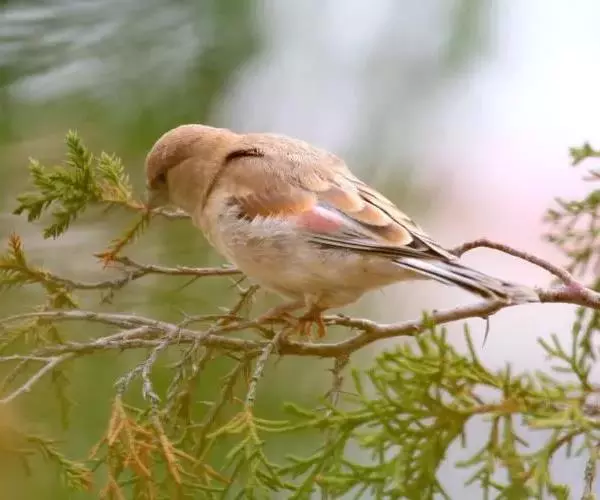 锡嘴雀:全长184厘米,头顶棕褐,头侧及腰和尾上覆羽等较淡;后颈灰色,翕和下背微褐;翅上的内侧覆羽…