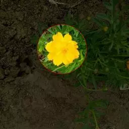 头状花序径约6cm,舌状花基部黄色,外有白、雪青、深红、玫瑰红、黄褐等色圈,管状花紫褐色;花期4-6月。