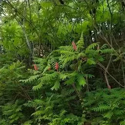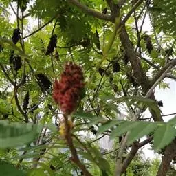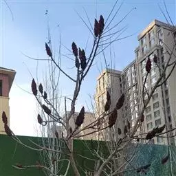 火炬树是漆树科盐麸木属落叶灌木或小乔木;株高,树形不整齐;小枝粗壮,红褐色,密生绒毛;叶轴无翅,…