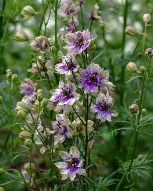 一年生草本,较耐寒,喜干燥,忌涝,宜深厚肥沃的砂质壤土,需日照充足、通风良好的凉爽环境。茎直立,上部疏生分枝,茎叶疏被柔毛。叶互生,茎生叶无柄,基生叶具长柄。总状花序顶生,花径约2.5厘米。作为花坛花,是一种具有直立型花穗的品种,在长穗上密布小花,让人感觉华贵,也是英国花园流派的代表型品种。名字由来据说来源于具有长管型的突出部位的花朵,犹如千鸟飞翔的样子。重瓣的花瓣和美丽的颜色,作为切花也是能保持较长的花期良好品种,栽培容易。