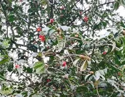 列植:红皮糙果茶树干挺拔,枝条自然下垂,树形优美,配置在道路两边作为行道树,形成了很好的夹景效果,开花之后,由于花大且密,又可形成白色花径;挂果之后,红褐色的茶果垂在枝条上,甚是可爱,可形成野趣横生的果径。