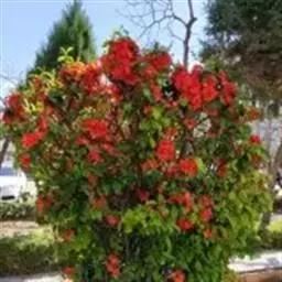对植:红皮糙果茶适应性强,耐修剪,可进行造型,如各种几何外形、球形、圆柱形等,可对植于建筑物前、三叉路口或是入口等处,为园林景观增添乐趣。此外,其花略带香气,当达到盛花期时,香气弥漫,如对植于各种入口处,不仅起到了很好的指引作用,而且也使游客心旷神怡,感觉惬意。