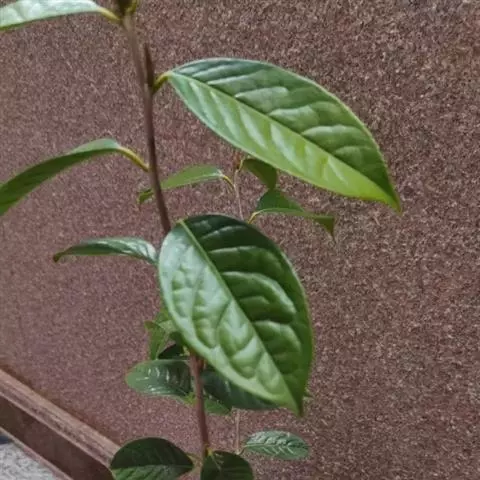 小乔木,高5-7米,树皮红色,嫩枝无毛。叶硬革质,倒卵状椭圆形至椭圆形,长8-12厘米,宽4-5厘米,先端短尖,尖头钝,基部楔形,上面深绿色,下面灰绿色,无毛,侧脉约6对,在上面不明显,在下面明显突起,边缘有细钝齿,叶柄长6-10毫米,无毛。
