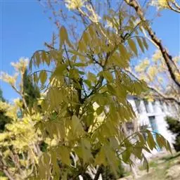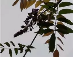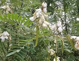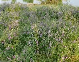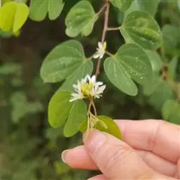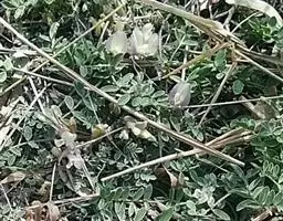 羽状复叶长8-14厘米,密集有19-41片小叶,托叶线形,长约1.5厘米,中部以下与叶柄基部贴生,疏被白色短柔毛;叶柄与叶轴疏被长柔毛,干后卷曲,宿存,小叶密生;几无小叶柄;叶片长圆形、卵形或几圆形,长3-11毫米,宽2-6毫米,先端圆,较少截平或微凹,基部显著偏斜,上面深绿色,下面灰白色,两面皆无毛。