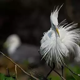 雪鹭:全身洁白的羽毛,颈背有丝状蓑羽。有一双亭亭玉立黄色长腿和一个黑色的鸟喙。在繁殖季节,鼻孔和眼…