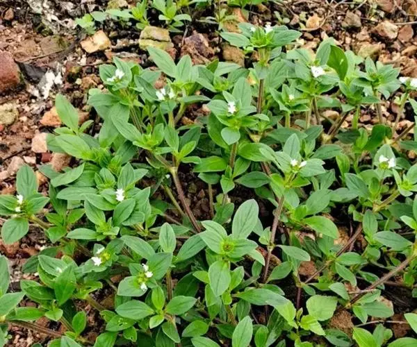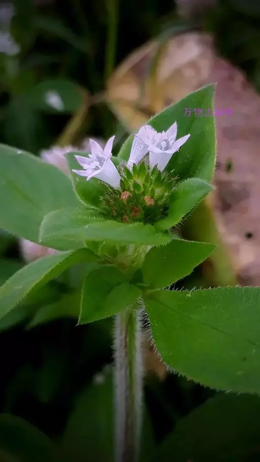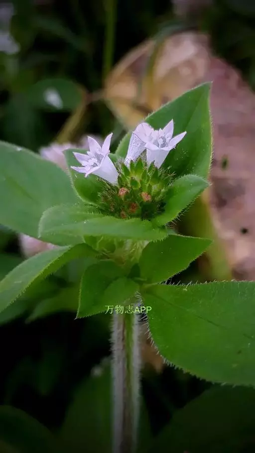 一年生匍匐或近直立草本,长可至80余厘米或过之;主根近白色。茎近圆柱形,被硬毛,节上无不定根,疏分枝。叶厚纸质,卵形、椭圆形或披针形,长1-5厘米或过之,顶端通常短尖,钝头,基部渐狭,两面粗糙,边上有缘毛;叶柄长约5-10毫米;托叶鞘状,顶部截平,边缘有数条长约2-5毫米的刚毛。头状花序有花多朵,顶生,几无总梗,总梗顶端有1或2对叶状总苞,分为2对时,则里面1对较小,总苞片阔卵形;花6或5数;萼长2.5-3.5毫米,萼管顶部缢缩,萼裂片披针形或狭披针形,长约为萼管的2倍,被缘毛;花冠白色,漏斗状或高脚碟状,管长2-8毫米,里面基部有一环白色长毛,裂片6,盛开时星状展开,偶有熏衣草的气味;雄蕊6,伸出或不伸出;子房通常有3心皮,柱头头状,3裂。分果瓣3 (-6),长2-3.5毫米,长圆形至倒卵形,背部密覆小乳凸和糙伏毛,腹面有一条狭沟槽,基部微凹。花期春夏间。