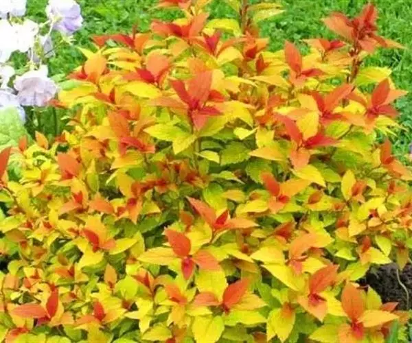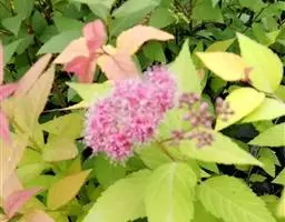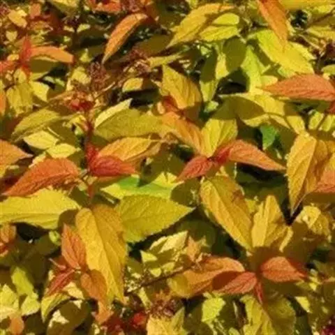 金焰绣线菊,栽培种,为落叶灌木,芽小,芽鳞2-8。单叶互生,具锯齿、缺刻或分裂,稀全缘,羽状脉,…