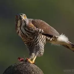 褐耳鹰的体形比苍鹰要小得多,为小型猛禽,体长为31-44厘米,体重217-325克。上体灰色,…