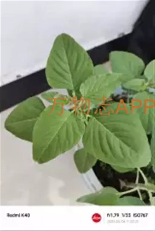 千穗谷一年生草本;茎绿色或紫红色,分枝,无毛或上部微有柔毛。叶片菱状卵形或矩圆状披针形,具凸尖,…