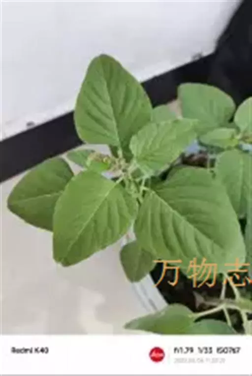 一年生草本,高40~80厘米,全株无毛。茎直立,稍分歧,具条棱,绿色或 绿苋 带紫色、叶互生,有柄,柄长3~6厘米;叶片卵形或卵状椭圆形,长2~6厘米,宽1.5~4.5厘米,基部广楔形,先端凹缺,并具/J,束TJ尖.全缘或微波状缘,表面绿色,背面色淡,两面均无毛。花单性或杂性,腋生穗状花序再形成顶生或侧生直立的圆锥花序、苞小,于膜质.披针形;花被片3,膜质、长圆形至倒披针形,长1.5~2.0毫米、内弯,比果实短,先端尖,背部具1条绿色隆起的中脉;雄蕊3,比花被片短;柱头3,具细齿状毛。胞果近扁球形,表面极皱缩,不开裂。种子圆形,稍扁,黑色至黑褐色,有光泽,径约1毫米,具薄而锐的环状边缘。花期7—8月,果期8—9月。