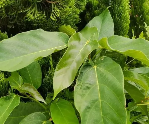 三角榕为常绿乔木或小乔木。叶片近三角形,薄肉质,全缘,长4~6厘米,宽3~5厘米,浓绿色。