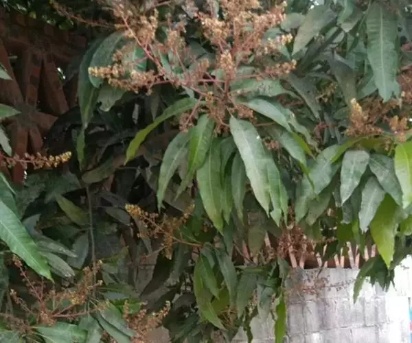圆锥花序长20-35厘米,多花密集,被灰黄色微柔毛,分枝开展,最基部分枝长6-15厘米;苞片披针形,长约1.5毫米,被微柔毛;花小,杂性,黄色或淡黄色;花梗长1.5-3毫米,具节;萼片卵状披针形,长2.5-3毫米,宽约1.5毫米,渐尖,外面被微柔毛,边缘具细睫毛;花瓣长圆形或长圆状披针形,长3.5-4毫米,宽约1.5毫米,无毛,里面具3-5条棕褐色突起的脉纹,开花时外卷;花盘膨大,肉质,5浅裂;雄蕊仅1个发育,长约2.5毫米,花药卵圆形,不育雄蕊3-4,具极短的花丝和疣状花药原基或缺;子房斜卵形,径约1.5毫米,无毛,花柱近顶生,长约2.5毫米。核果大,肾形(栽培品种其形状和大小变化极大),压扁,长5-10厘米,宽3-4.5厘米,成熟时黄色,中果皮肉质,肥厚,鲜黄色,味甜,果核坚硬。
