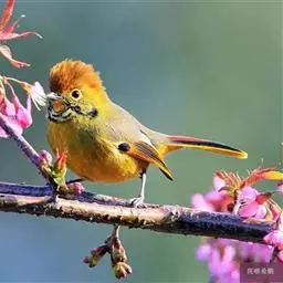 银耳相思鸟小型鸟类,体长14~18厘米。头顶黑色,耳羽银灰色,前额橙黄色;外侧飞羽橙黄色,基部朱红色,…